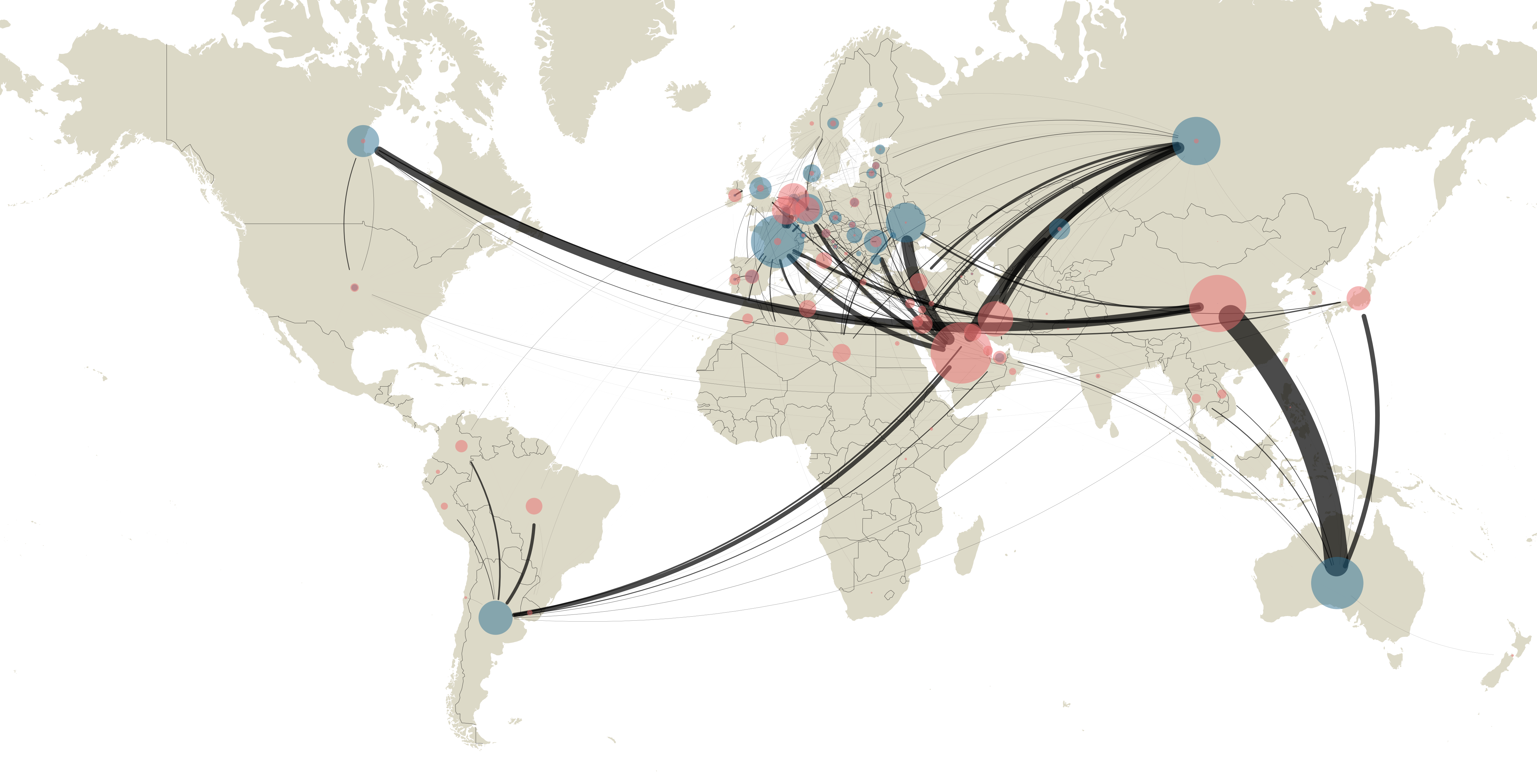 A novel and detailed view of international migration flows between all countries since 1990, estimated using deep learning on social, economic, and political covariates.